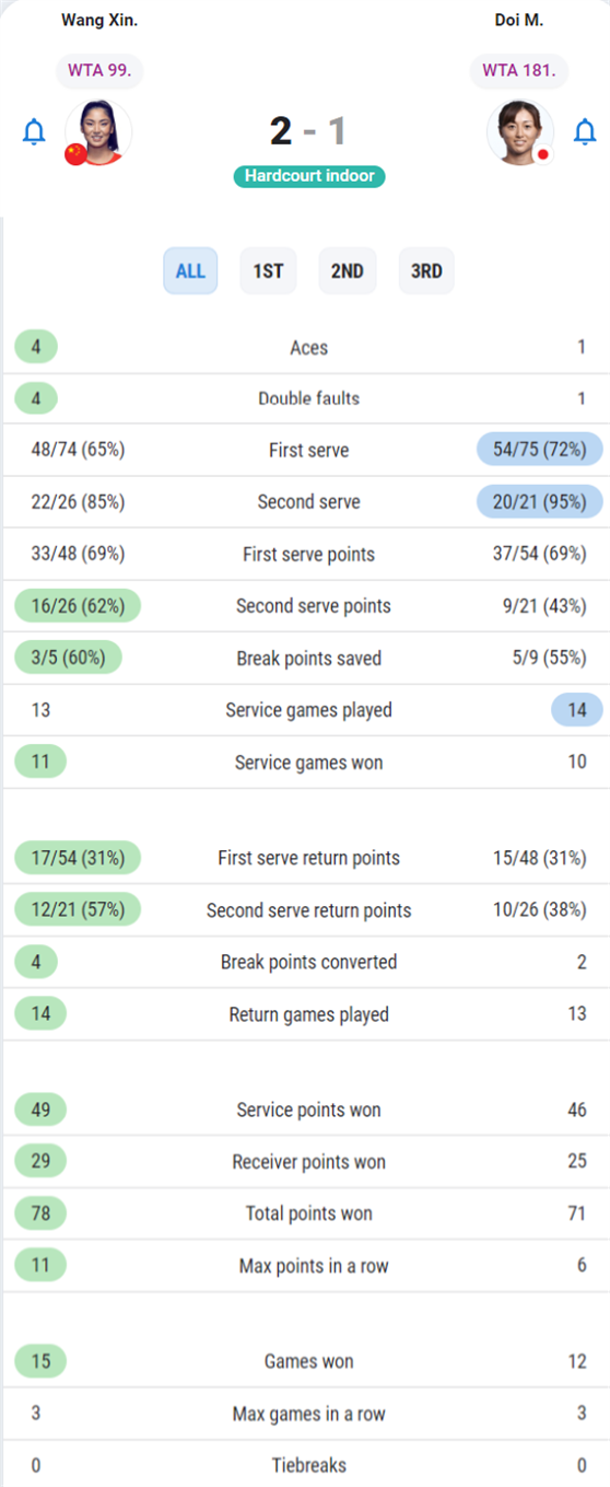 王欣瑜逆转复仇土居好意思咲晋级半决赛